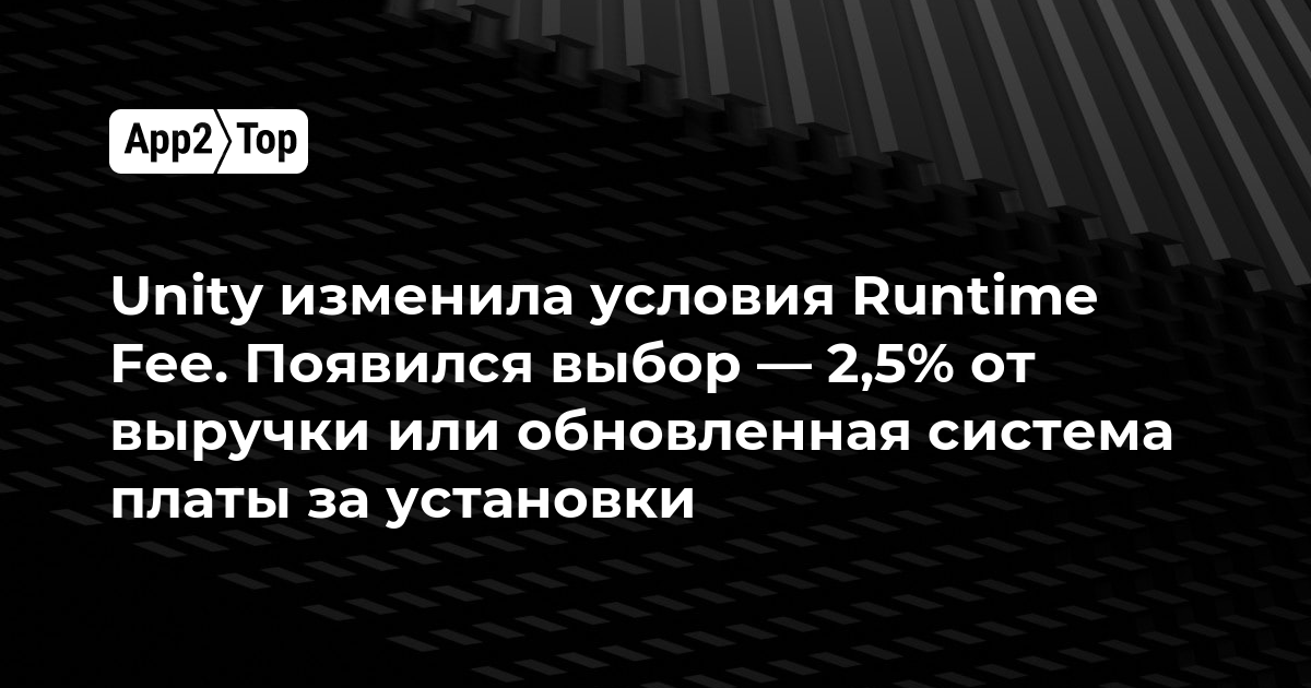 ▪️У разработчиков появится выбор — или делиться 2,5% выручки с Unity, или платить за установки сверх порога;