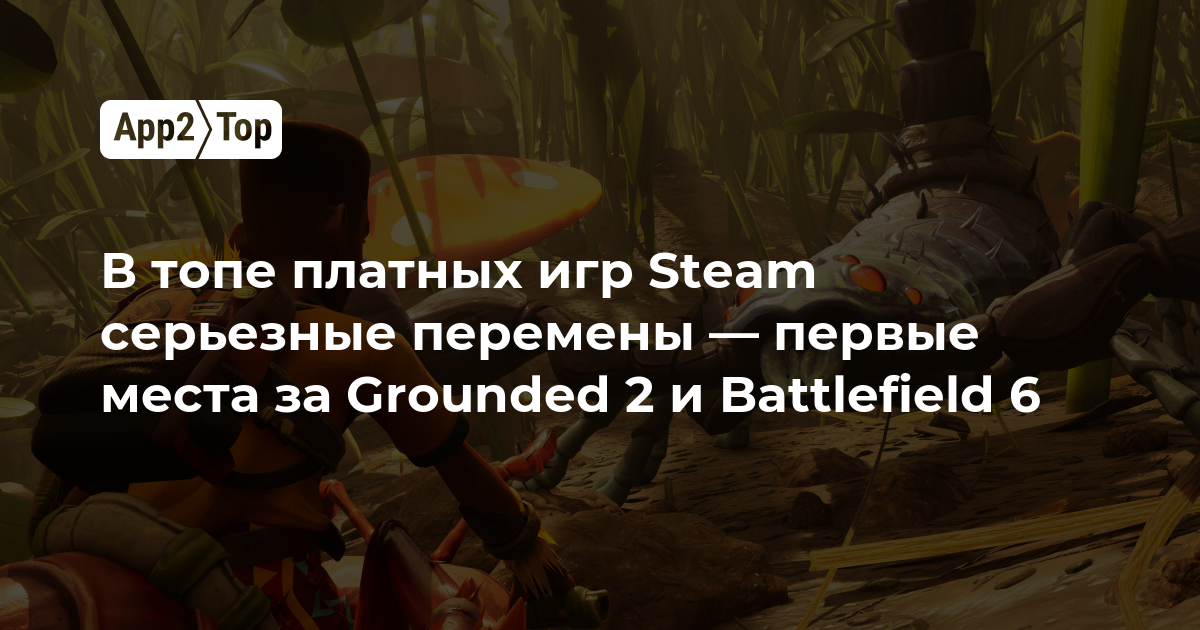 Первый сюрприз — на первом же месте. Как горячие пирожки расходится Grounded 2 от Obsidian Entertainment и Eidos-Montréal. Кооперативная песочница опередила по недельной кассе Battlefield 6, продажи предзаказов на которую начались 31 июля.